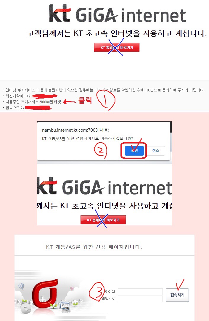 2. 각 지역 페이지(***.internet.kt.com)로 리디렉션 되면서