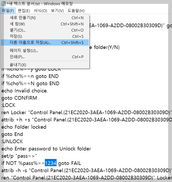 FolderLocker.bat 입력하여 저장해주세요