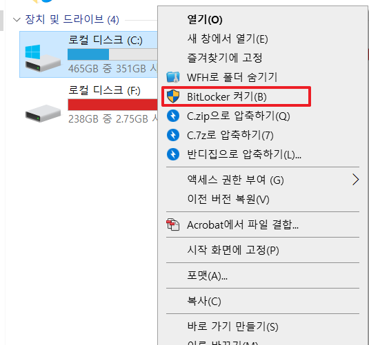 윈도우에서 제공하는 bitlocker는 폴더가 아닌 드라이브를 암호화하는거며