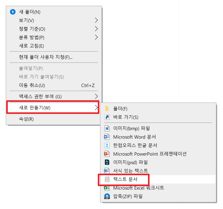 우클릭 - 새로 만들기 - 텍스트 파일 클릭