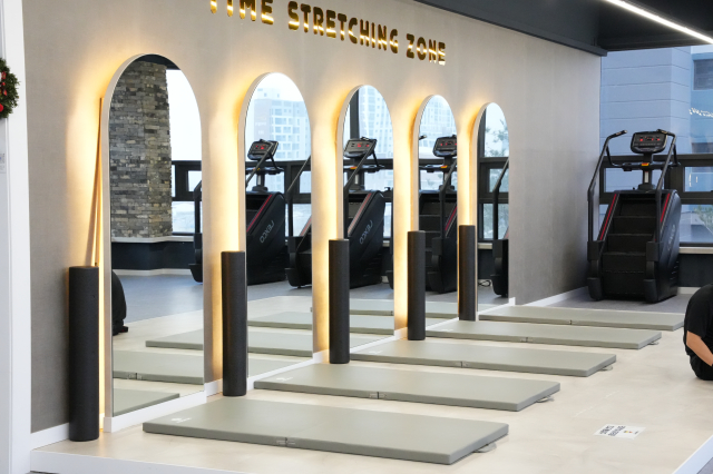유산소 공간에는 스트레칭 존이 별도로 구성 되어 있는데
